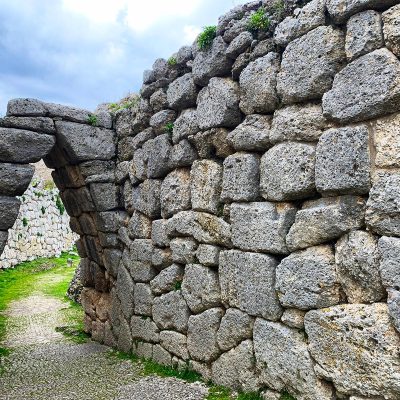 L'Arco a Sesto Acuto. ad Arpino (Fr), rappresenta l’antica ed unica porta di accesso all’Acropoli di Civitavecchia, costruita dai Volsci probabilmente sette secoli prima di Cristo. Alta poco più di 4 metri, è formata da blocchi sovrapposti in pietra, uniti tra di loro senza alcun collante, che restringendosi verso l’alto le conferiscono la forma a ogiva, tipica delle porte scee (sono famose quelle della città di Troia). La sua particolarità sta nell’entrata: aperta strategicamente di lato (scaevus in latino significa “sinistra”) costringeva gli assalitori a presentare il lato destro scoperto, che in caso di guerra, era quello senza scudo. L’insieme si rivela davvero singolare e non ha eguali con le porte megalitiche presenti in altri centri laziali. In epoca medievale fu chiusa da un torrione di difesa e fu aperto un nuovo accesso all’Acropoli, questa volta a tutto sesto, ai piedi della Torre.