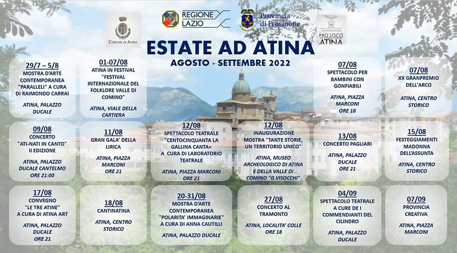 Atina Estate 2022 tutto il programma dell'Estate 2022 ad Atina (Fr).