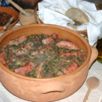 Affettare sottilmente la trippa, lavarla e scolarla. In una casseruola di coccio soffriggere le verdure affettate, l'aglio e l'alloro: aggiungere la trippa, farla asciugare, versare il vino e far evaporare completamente. Unire i pomodori, salare e pepare. Portare a cottura bagnando di tanto in tanto con acqua e rimescolare spesso; prima di togliere la trippa dal fuoco aggiungere il basilico. Rimescolare e servire con abbondante pecorino grattugiato.
